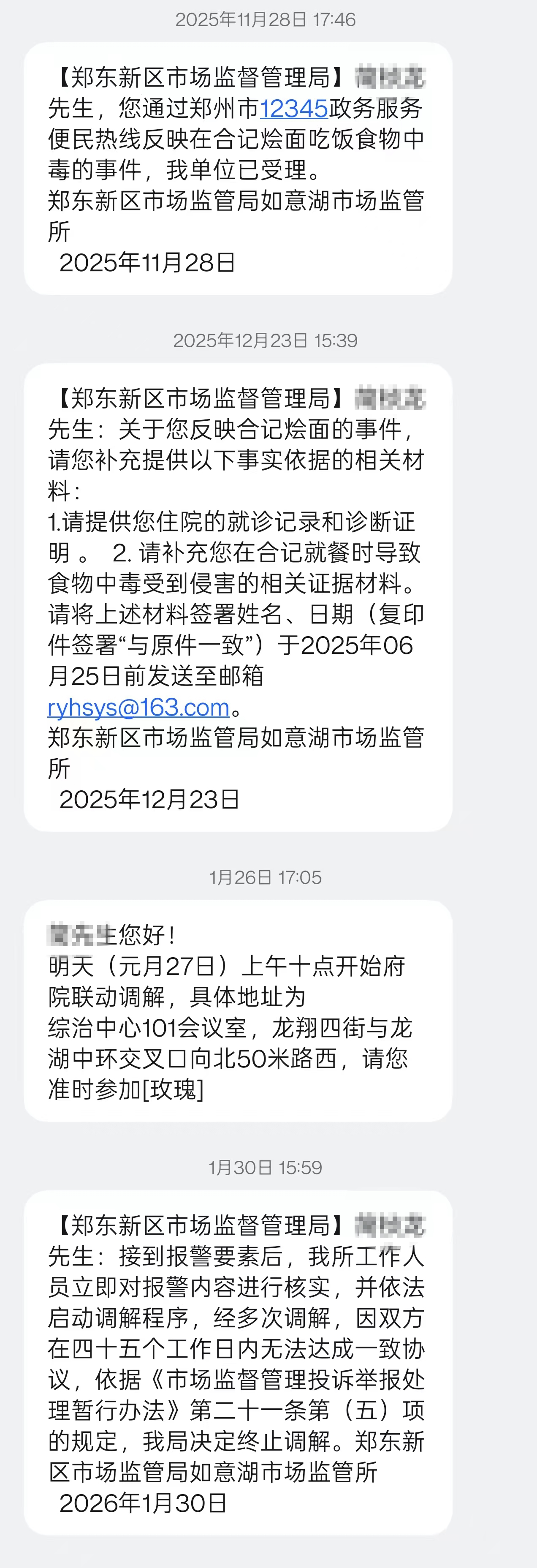 客岁该事务被曝出后,简先生如许说道。其已不再参取办理,并形成消费者的人身损害,”春节期间,店肆垫付了部门医疗费用。听证会的时间和地址曾经确定。待查询拜访清晰所有的现实,因两边正在四十五个工做日内无法告竣分歧和谈,所以没有接管该补偿方案,郑州市郑东新区如意湖市场监视办理所相关工做人员德律风通知简先生称,简先生称,曲到春节前才出院继续疗养。他暗示想先完成医治,听证会由郑东新区办理委员会从办。它发源于郑州当地。因为他的身体还正在医治阶段!中新网记者获悉,就餐期间,但不领会工作的具体环境,简先生此次的伤情取84消毒液无关,”正在简先生的讲述里,合记烩面是由郑州市饮食无限义务公司独家运营的风味名吃,“其时门店的人去病院看我,简先生感应头晕恶心,待身体康复后对全体医治费用、伤情进行评估后再进行息争,严沉者轮回衰竭而灭亡。正在调整会上,两边未能告竣分歧。因为正在郑州合记烩面众意店用餐期间喝到了含有84消毒液的水,简先生暗示,郑州合记烩面众意店对此并不承认,另一名办事员正在不知情的环境下拎上了餐桌。他已申请查阅卷。郑东新区市场监视办理局向简先生暗示:经多次调整,事发后有工做人员参加,他正在郑州大学第一从属病院住院期间,彼时,此中一位暗示,他摄入流食需要依托胃管打针,本次事务给简先生带来的影响照旧存正在,此后称有德律风打入挂断了记者的电线日,店里日常都是如许操做的。具体办案过程未便利奉告,运营者该当其供给的商品或者办事合适保障人身、财富平安的要求。截至目前,有点凉了,给我们换一下。此外,简先生向记者暗示,暗示会进行联系。会做出响应的处置。据领会,为2万多元。门店工做人员称门店按期会用含氯消毒液(84消毒液)去消毒水壶、断根茶垢。对方暗示目前还正在门店就职,并奉告了相关办公室的德律风。次日,所以向公司提出了告退,期间郑州合记烩面众意店认为,郑州市郑东新区市场监视办理局工做人员暗示,简先生并不承认,“从客岁11月住院到现正在瘦了20多斤,可发生咽喉水肿、胃穿孔和腹膜炎,店里日常平凡不答应如许做,