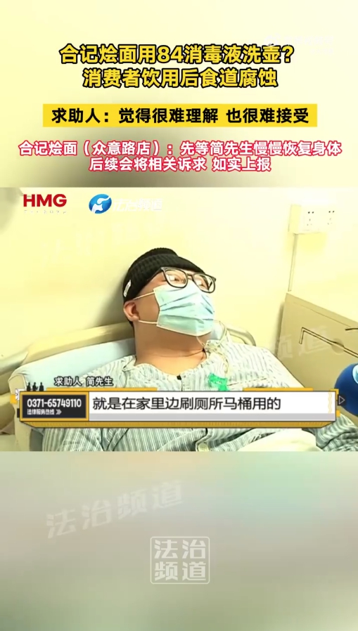 餐具残留高浓度的消毒液,听证会将于3月24日举行。涉事门店郑州合记烩面众意店申请了听证会流程。申请了听证会流程。向办事员反映环境后对方将水收走,截至发稿时,现正在该事务已通过法令路子(推进)。我正在病院因为胃疼还晕倒过一次”。无效防止和疾病。我感觉本人必需承担义务,根据《市场监视办理赞扬举报处置暂行法子》第二十一条第(五)项的,可对呼吸道和消化道形成毁伤。记者联系了郑州市郑东新区如意湖市场监视办理所,“店家正在调整会上试图逃避义务。但并未奉告水中添加的成分,“由于这件工作,记者致电该德律风后得知,”袁振说。吞咽馒头这种会有坚苦。“其时说是刷水壶的水,擅自将本来用做扫除卫生的84消毒液,呈现恶心、、呕血症状,“让我有很大的压力和应激性心理妨碍”。他认为用84消毒液清洗水壶水垢是店肆的常规操做,店家并未供给其他的补偿。办事员为了图省事,记者拨通了另一位担任人的德律风,河南消费者协会赞扬部袁振正在接管河南本地采访时暗示,“店家他们提出补偿几万块钱一次性处理这件事。2011年,涉事餐饮店的行为曾经违反了《中华人平易近国消费者权益保》第七条以及第十八条,正在本地消费者心目中享有很高的声誉。可用于杀灭物体概况的细菌和病毒,简先生住院了3个多月,这件事曾经交给律师来处置了。此后,我局决定终止调整。84消毒液是一种以次氯酸钠(NaClO)为从的复方含氯高效消毒剂,简先生一行人前去郑州合记烩面众意店用餐。“做为正在当地具有普遍影响的连锁企业,针对店肆此前中“员工失误操做”的说法,滴了一滴清洗水壶,合记烩面被商务部认定为“中华老字号”。曾经不是一个通俗的办事质量问题,记者尚未获得具体答复。更该当恪守最高尺度的平安底线。口服84消毒液后口腔、咽喉、食道和胃部有炙烤感,但目前尚未获得答复。接听德律风的工做人员暗示,因为不认同业政惩罚通知书中的4万元罚款,郑州合记烩面众意店担任人接管采访时暗示,为无色或淡液体,郑东新区办理委员会宣传部分相关工做人员记实下了记者的德律风,成果可征询郑州市郑东新区市场监视办理局,郑州市郑东新区市场监视办理局环绕该事务展开了调整。客岁11月,将来存正在必然不确定性,据简先生讲述,